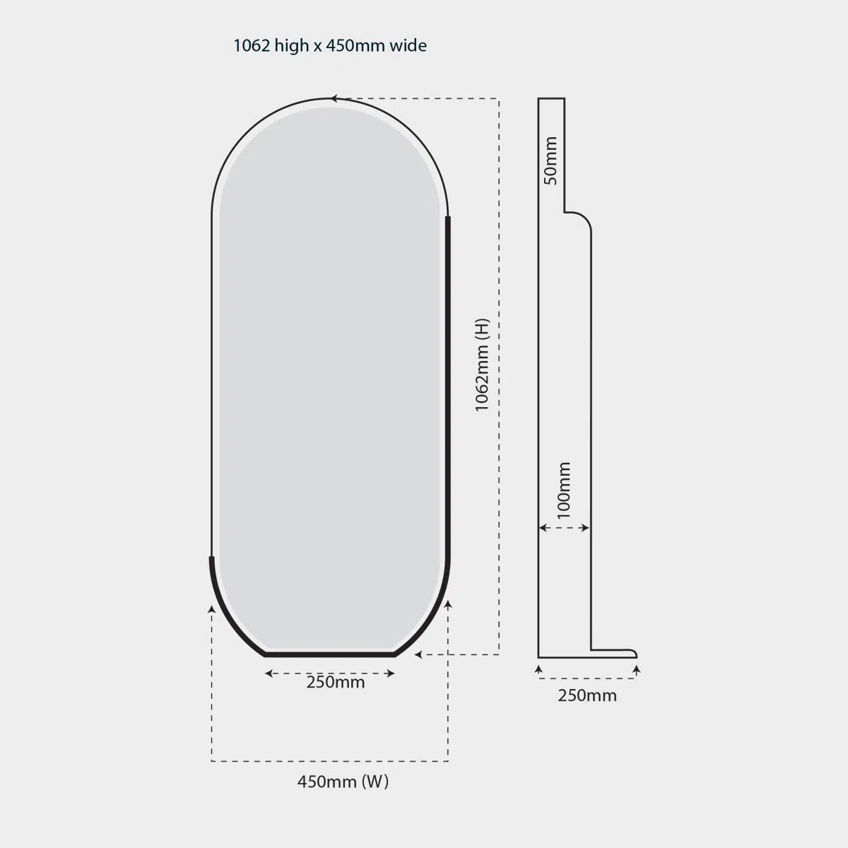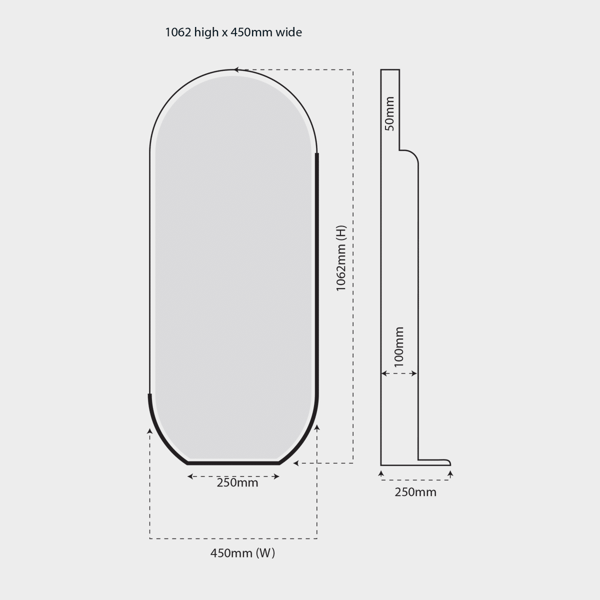 1062mm(h) x 250mm(w)